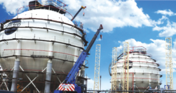 Our typical range of project consists of taking overall responsibility for the design, engineering, fabrication, construction, and painting (from conception to turnover) of storage tanks for the oil production and refinery, the Liquefied Natural Gas (LNG), the Refrigerated Petrochemical Importing Terminal, Spherical Tanks for LPG, ammonic storage tanks for fertilizer production, cement and clinker silos, penstocks and tunnel liners for hydroelectric plants, and cooling water piping for power stations.